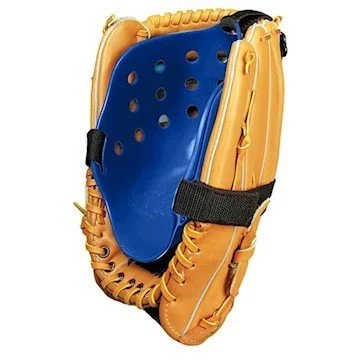 The Glove Guard is a molded, hard piece of plastic that has a Velcro strap. It fits in the pocket of left-hand wearing ball gloves to deepen the pocket of your glove for added on-field performance. It also doubles, even triples the life of your glove by providing valuable protection during storage or travel. There are two sizes: 1) glove sizes up to 11.75” (color black) and 2) glove sizes 12” and up (color blue).